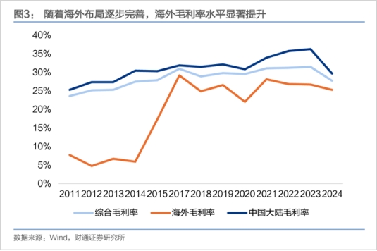 目前,海爾智家已是全球化程度最高的中國(guó)企業(yè)之一,海外收入占比超過50%,且海外毛利率呈整體抬升趨勢(shì)。這樣的收入結(jié)構(gòu),可擺脫國(guó)內(nèi)內(nèi)卷,在成熟市場(chǎng)提升市場(chǎng)份額的同時(shí),進(jìn)入更多新興市場(chǎng),海外業(yè)務(wù)有望再上新臺(tái)階。