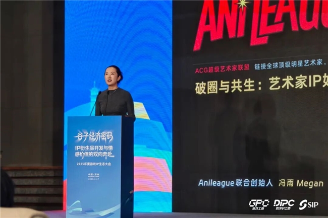 Anileague聯(lián)合創(chuàng)始人 馮雨女士發(fā)表了《破圈與共生:藝術(shù)家IP如何重構(gòu)谷子經(jīng)濟(jì)價值鏈》的主題演講。馮雨女士表示谷子經(jīng)濟(jì)不止 “周邊“,更是情感價值的消費(fèi)革命,藝術(shù)家的情感語言與品牌,與觀眾產(chǎn)生共鳴才誕生了讓人一眼難忘的角色。同時,在社交媒體的浪潮下,年輕人開始好奇:“是誰創(chuàng)造了我喜歡的角色?”于是,藝術(shù)家從幕后走向臺前——不再只是制作流程中的一環(huán),而是成為內(nèi)容本身的一部分。Anileague從 2017 年開始同藝術(shù)家一起運(yùn)營他們的官方賬號,打造爆款內(nèi)容,做定制化設(shè)計,策劃跨界合作,讓他們的作品、他們的故事,真正走進(jìn)中國觀眾的生活。馮雨女士表示Anileague不只運(yùn)營藝術(shù)家賬號,還會策劃原創(chuàng)的本地化的熱點(diǎn)話題企劃——從選題、腳本、拍攝到多平臺分發(fā),全流程由團(tuán)隊主導(dǎo),確保每個故事都能打中情緒共鳴點(diǎn)。馮雨女士舉了一個例子:話題#玩藝術(shù)的人有多厲害。該話題在抖音、小紅書、B站等平臺累計播放量超過 1 億次,互動量超 150 萬+。馮雨女士強(qiáng)調(diào)當(dāng)藝術(shù)家被看見,創(chuàng)意便不再只是作品,而是一種可以被分享、被傳播、甚至被信任的能量。這股能量,可以跨越語言與國界,創(chuàng)造情感中的共鳴,也創(chuàng)造巨大的商業(yè)價值。